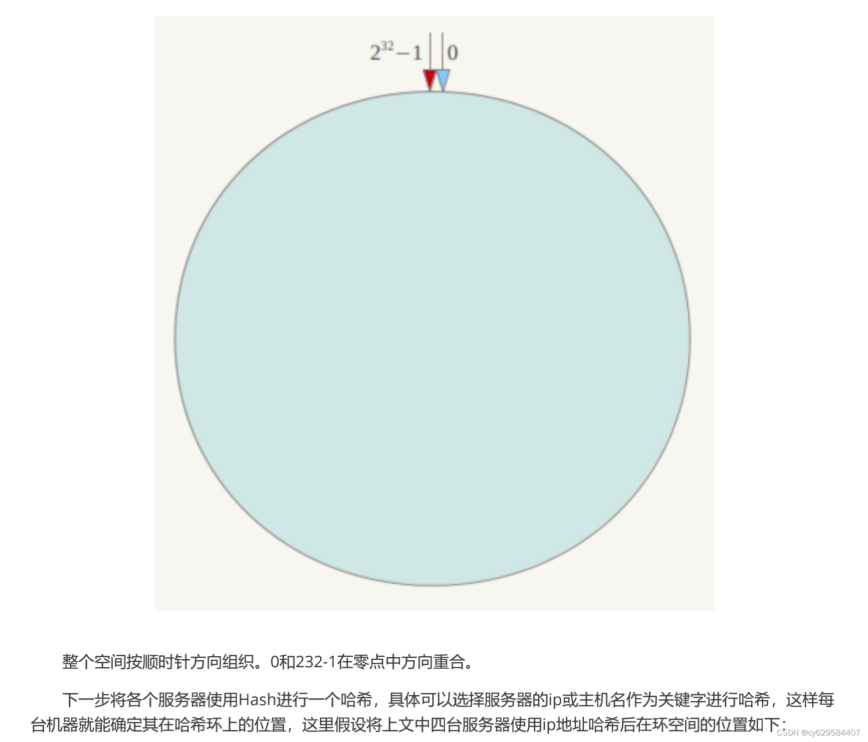 另外,一致性哈希算法在服务节点太少时,容易因为节点分部不均匀而造成数据倾斜问题。例如系统中只有两台服 务器,其环分布如下,