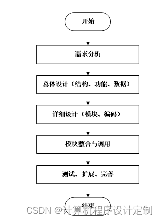 书籍推荐系统开发时,首先进行需求分析,进而对系统进行总体的设计规划,设计系统功能模块,数据库的选择等,本系统的开发流程如图3-1所示