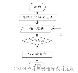 管理员可以对图书信息管理进行的修改,用户可以对自己权限内的信息进行修改,首先进入修改信息界面,输入修改信息数据,系统进行数据的判断验证,修改信息合法则修改成功,信息更新至数据库,信息不合法则修改失败,重新输入。修改信息流程图如图3-5所示。