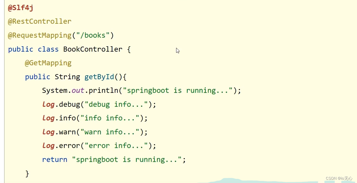 如果使用lombok,在类上面添加注解@Slg4j,可以不用写Logger log=xxx,类中就会有Logger对象,名字是log。