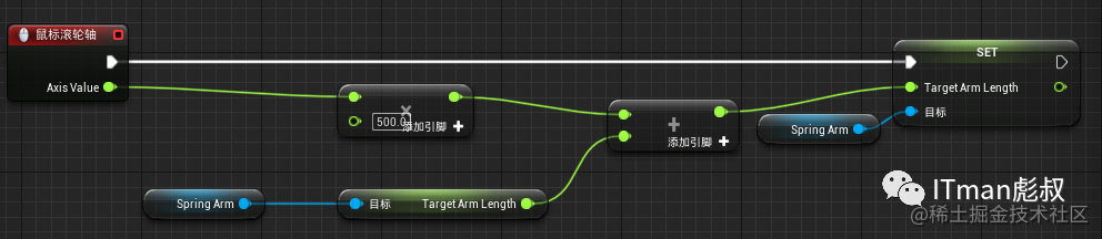 最后在原本长度上面增加一个长度,全部的蓝图如下所示: