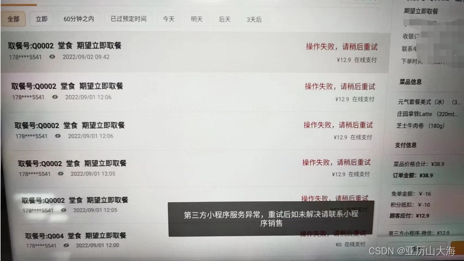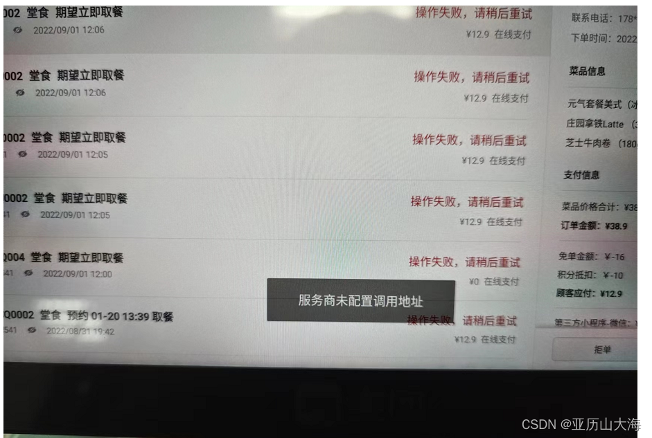 1、如果订单推送成功后,POS机点击接单后出现这个提示,是美团服务商的问题,联系解决。代码无问题