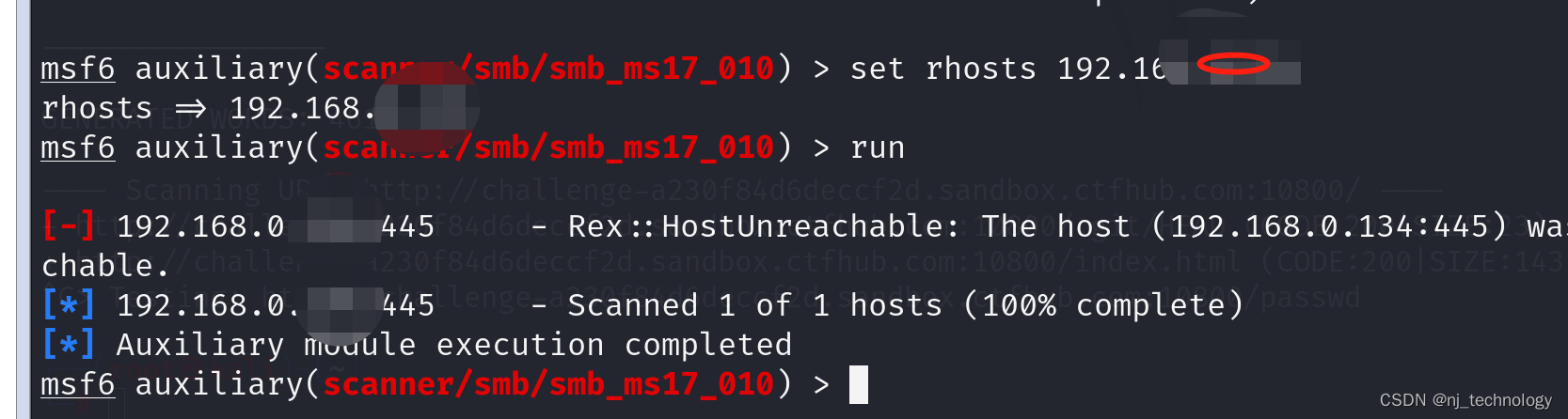 - set RHOSTS 192.168.0.1 (设定目标IP)