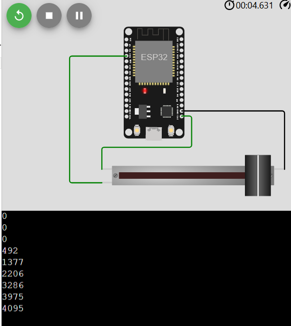 wokwi-slide-potentiometer Reference | Wokwi DocsSliding variable resistor (linear potentiometer)https://docs.wokwi.com/parts/wokwi-slide-potentiometer我们看到,滑动电位器的初始值是0,我们可以改变他的长度来调节它的大小。