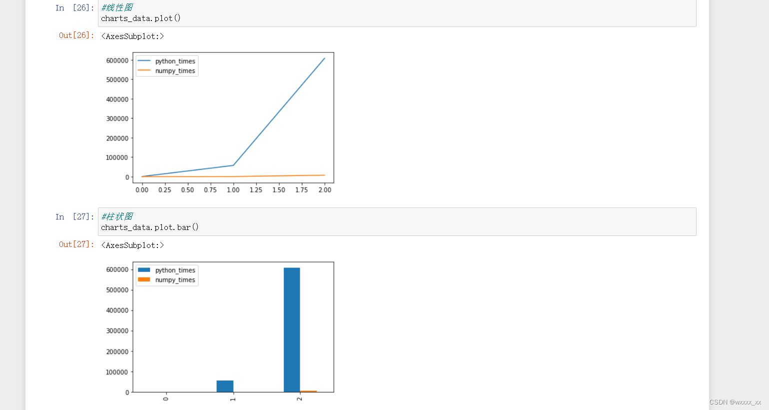 NumP与Python相比,代码更加简洁,性能更加高效,通过以下代码可看出numpy的高效性