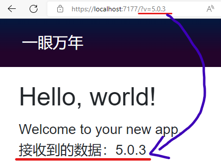在运行程序后,访问时加上 v=5.0.3,这个字段的值就能传到 Index 组件中。