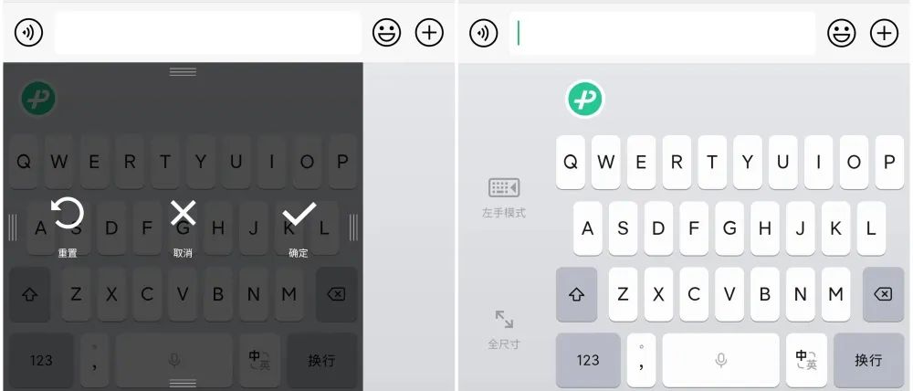 在微信键盘中,也支持左右手的单手模式和键盘调节。根据键盘调节可以调整微信键盘的尺寸,也算是比较人性化的设计了。