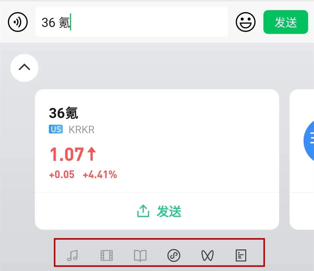 而按照特定名次下方显示的图标来看,微信输入法中是支持在输入特殊名词时直接发送QQ音乐、视频、微信读书、视频号、小程序和公众号的▼