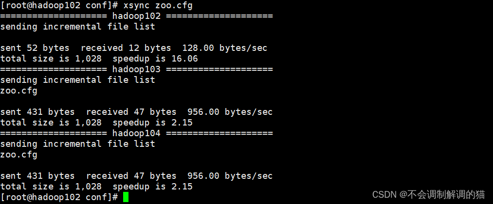 创建完成后使用 xsync 进行同步分发,没有这个脚本的可以去看下Hadoop 3.x - 本地安装 & 完全分布式安装 & 集群配置 & xsync分发脚本(解决root用户启动Hadoop集群的报错问题)