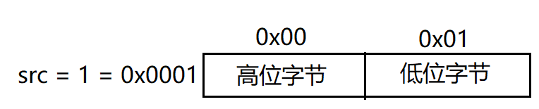 可以看到变量src的高位字节数据为0,低位字节数据为1,各不相同。