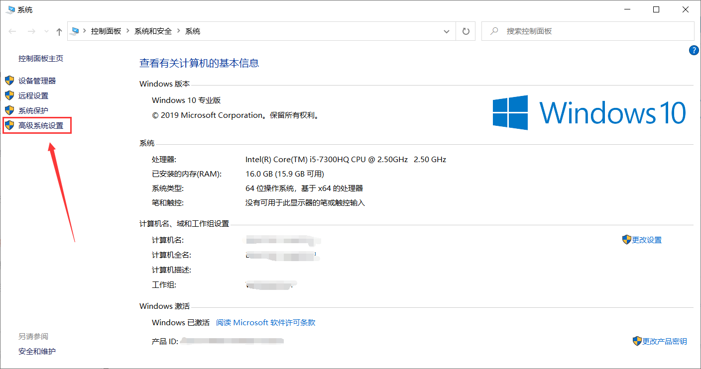 首先右击此电脑,属性,打开高级系统设置: