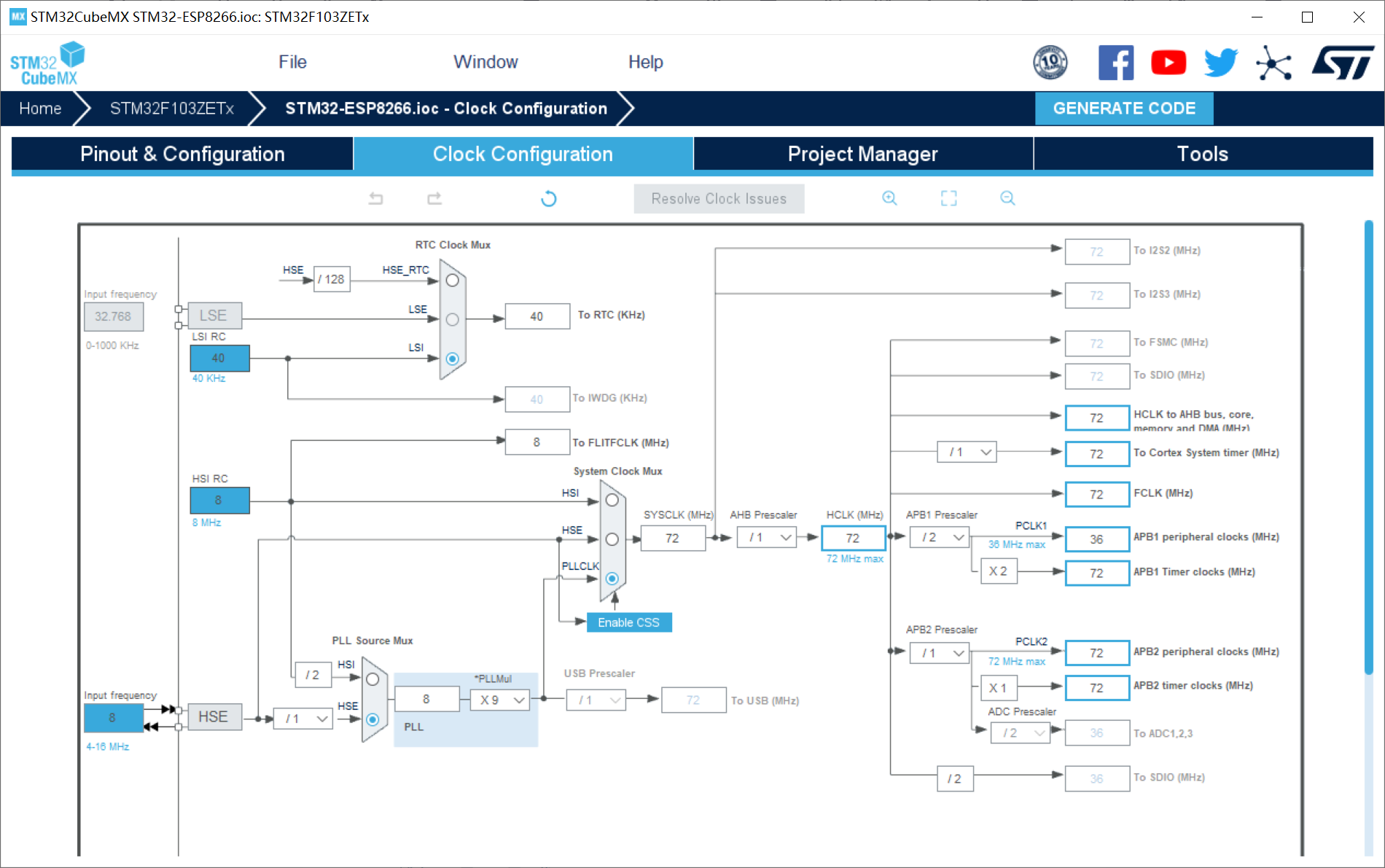 2、SYS配置:Debug设置成Serial Wire(否则可能导致芯片自锁);
