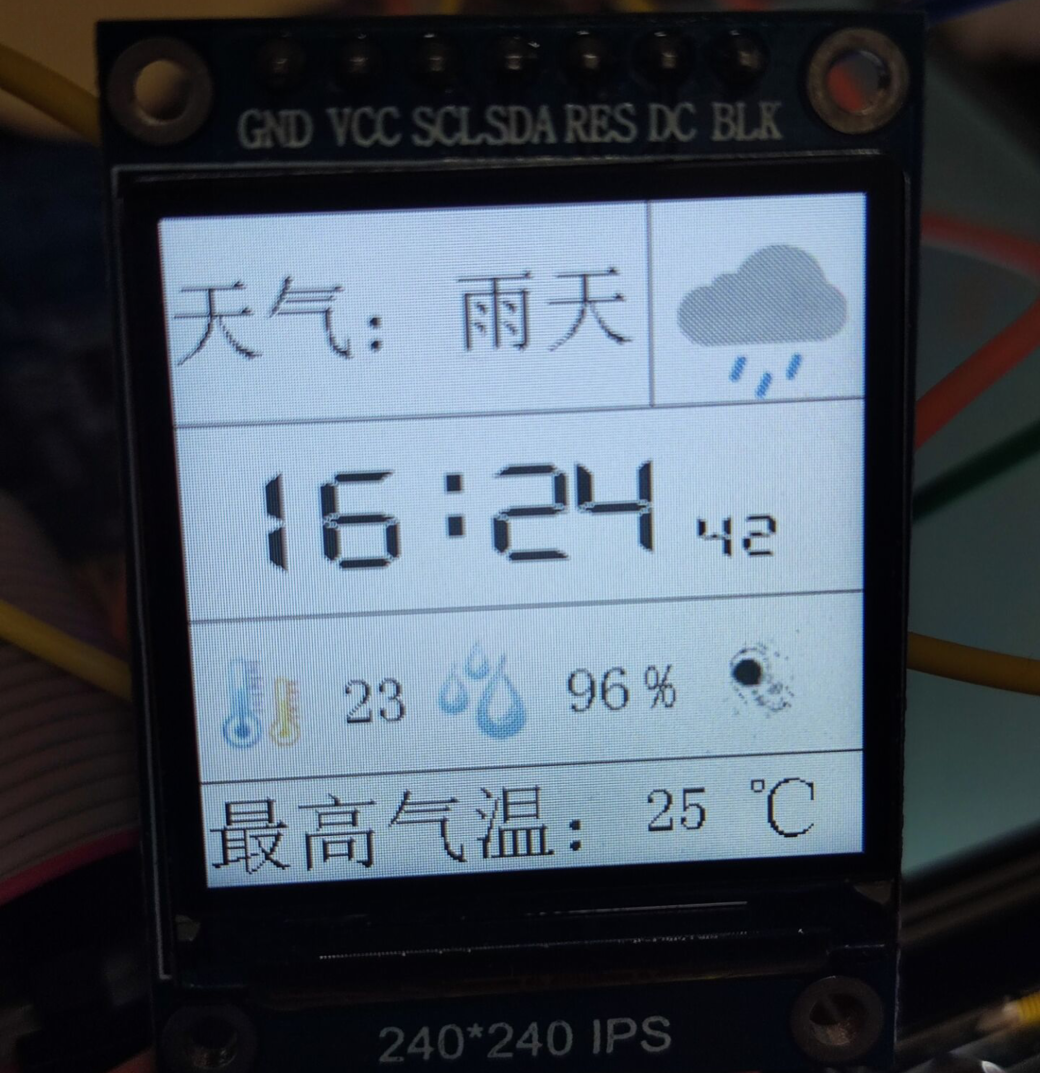 实验硬件:STM32F103ZET6;7针1.3寸TFT-LCD(240×240);ESP8266
