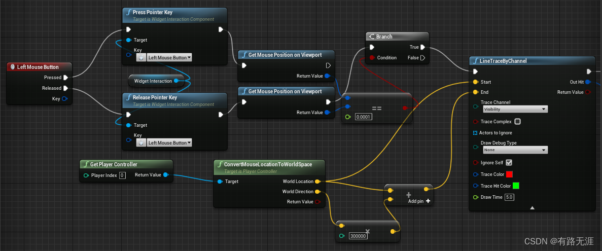 1、要实现点击,必须要给鼠标左键或者右键写发射射线的程序,如下