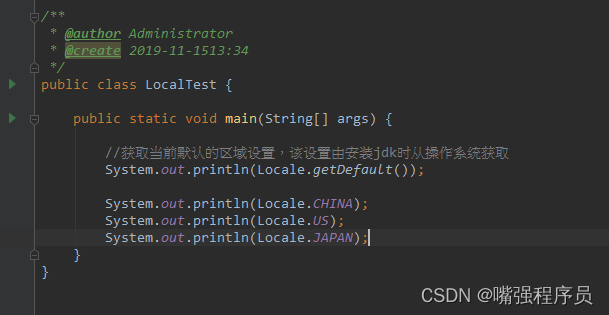 该类对象表示了特定的地理,政治和文化地区。重要成员:一个语言代号(ISO 639标准定义),一个国家或者区域的可选项(ISO 3169标准定义)。示例:zh_CN, zh为语言代号, CN为国家代号。在操作 Date, Calendar等表示日期/时间的对象时,经常会用到;因为不同的区域,时间表示方式都不同。