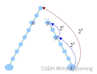 a y 向走 2^3 步,到达的节点的深度比 x 深度小,什么也不做。