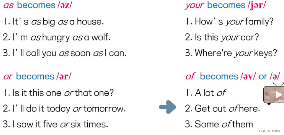 当一个单词和它前面的一个单词连在一起时,它的发音变得更短,常伴有省音的情况