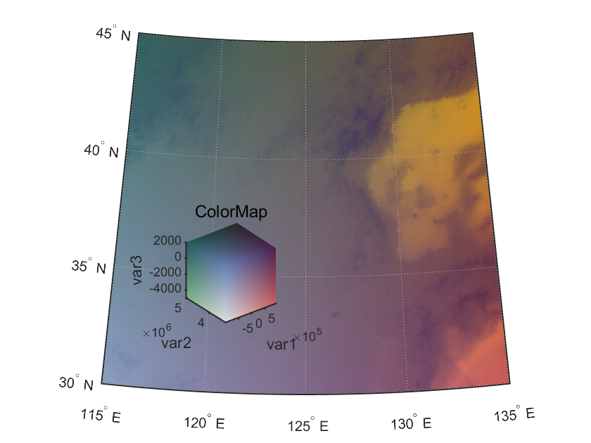 koreaHdl=geoshow(korea5c,korea5cR,'DisplayType','texturemap');