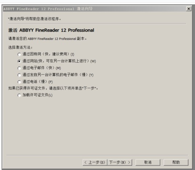 1,在您需要激活使用的电脑上安装ABBY,从【帮助】菜单选择 【激活 ABBYY FineReader】;