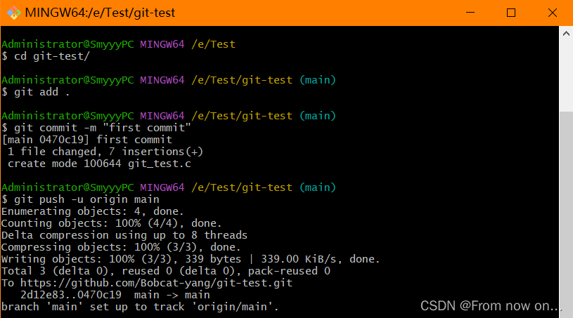 - git push -u origin main # 将本地仓库推送到 github 上,main是指主分支