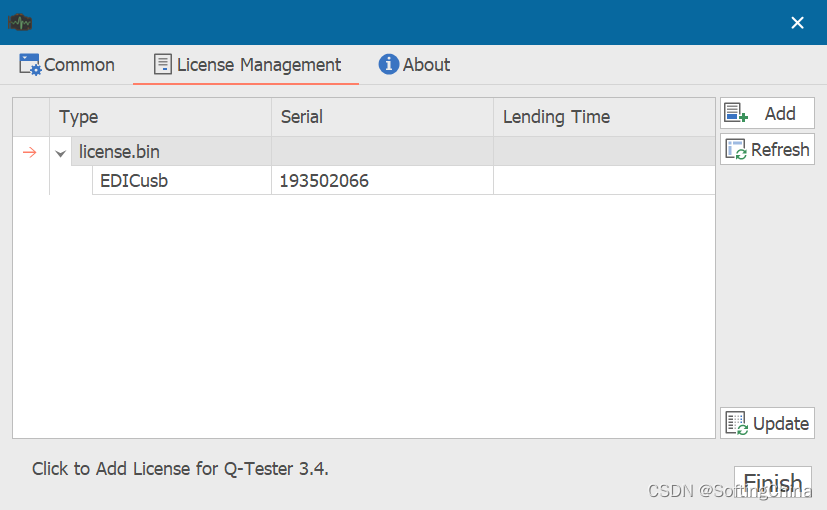 Q-Tester 3.4版本不同于以往版本——只能使用硬件狗,而是增加了License与VCI或电脑绑定的方式,从而变得更加简单方便了。