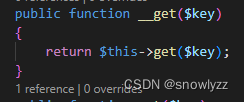 这里 有个 魔术方法 __get 调用了get。