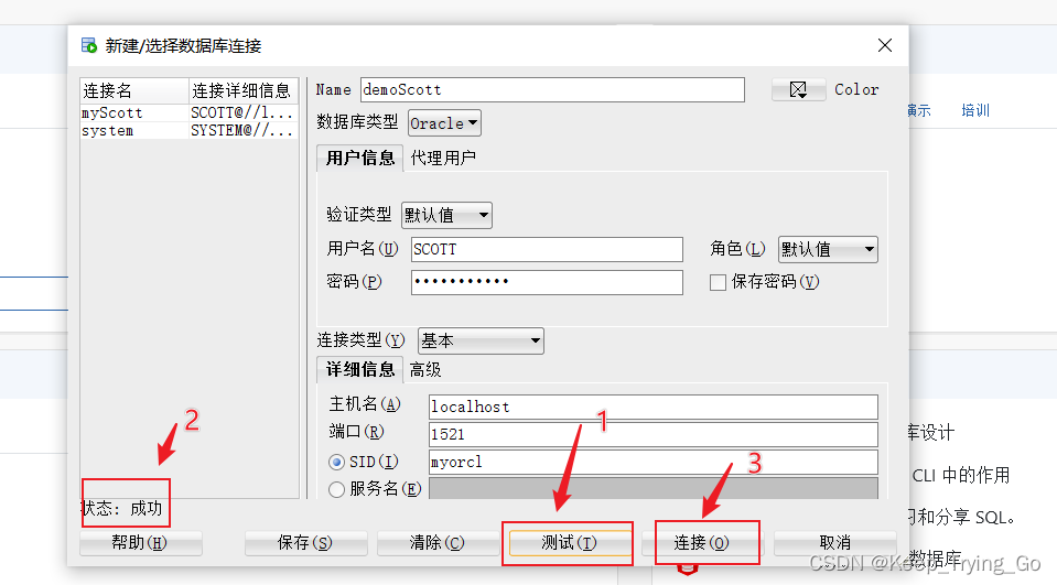 根据上面的方式将自己的SCOTT用户解锁即可进行相关的新建连接操作。