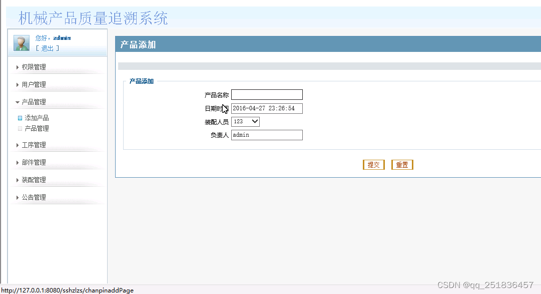 JSP 产品质量追溯管理统是一套完善的web设计系统(系统采用ssh框架进行设计开发),对理解JSP java编程开发语言有帮助,系统具有完整的源代码和数据库,系统主要采用B/S