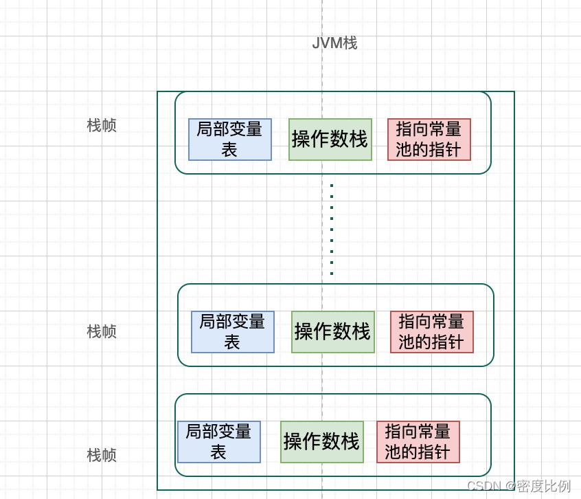 我们都知道虚拟机栈,它是每个线程私有的运行时堆栈,每个方法会创建一个栈帧,栈帧主要包含:本地变量列表、操作数栈、指向常量池的指针、返回地址。