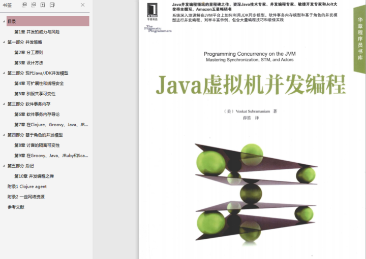 - 第四部分:基于角色的并发,详细讲解了如何在基于角色的模型下消除并发问题以及如何在自己的首选语言中使用角色模型;