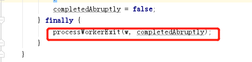 里面是一个while循环,循环判断任务是否为空,若不为空,执行任务;若取不到任务,或发生异常,退出循环,执行processWorkerExit(w, completedAbruptly); 在这个方法里把工作线程移除掉。