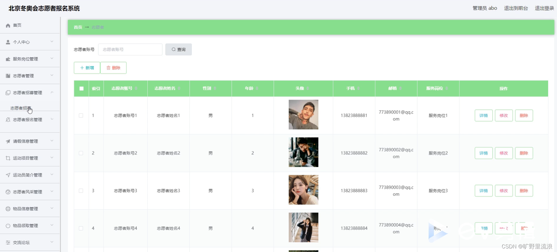 Springboot毕设项目北京冬奥会志愿者管理系统611yc(java+VUE+Mybatis+Maven+Mysql)