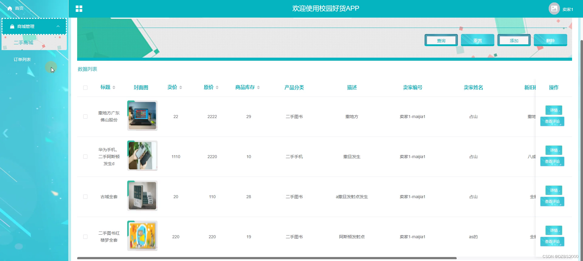 二手商城管理界面如下图所示。