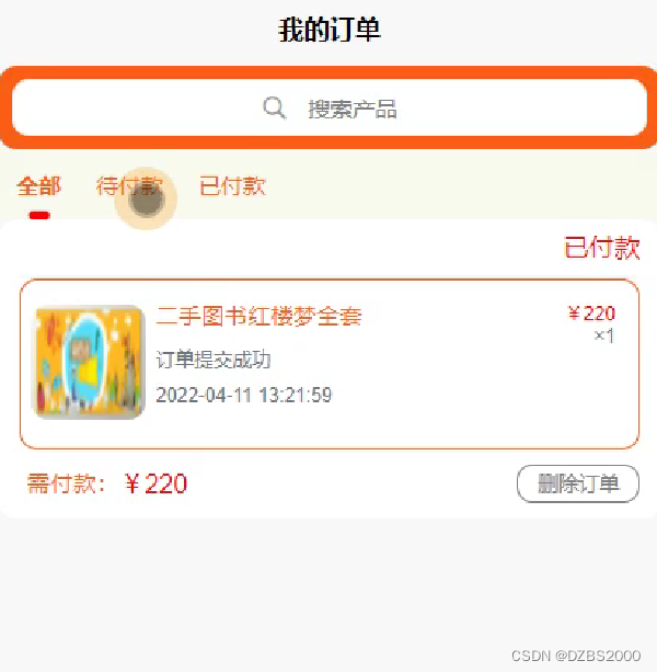 订单:在线进行订单支付操作。