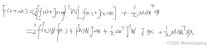 对于LM算法,在上面的基础之上还要添加阻尼因子:如下所示