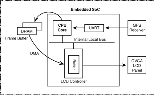 如下图所示,LCD控制器周而复始的从Framebuffer中逐一取出每个像素的颜色值并发送给LCD,所以用户只需要操作Framebuffer即可。