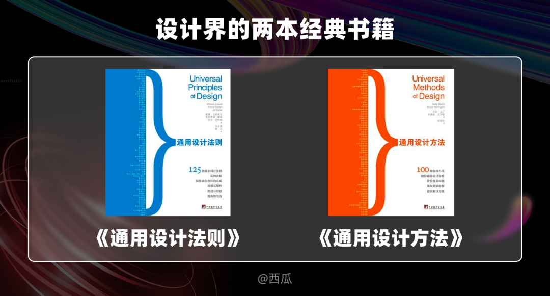 之前收藏过两本经典设计丛书,堪称设计界的“双刀”!一本是蓝色的,叫《通用设计法则》,另一本是橙色的,叫《通用设计方法》。这两本书是我好不容易才买到的二手书,是很早的第一版,目前线上卖的应该都是其他版本了,当然还是很贵,一本就要几百元。这两本书里面所有内容讲述的都是方法论,比如:调研用什么方法,怎么做,分析产品用什么方法,这么做,等等。其实更像是一本工具类书,它能帮你在不知道怎么解决的时候给你提供可行的方案。