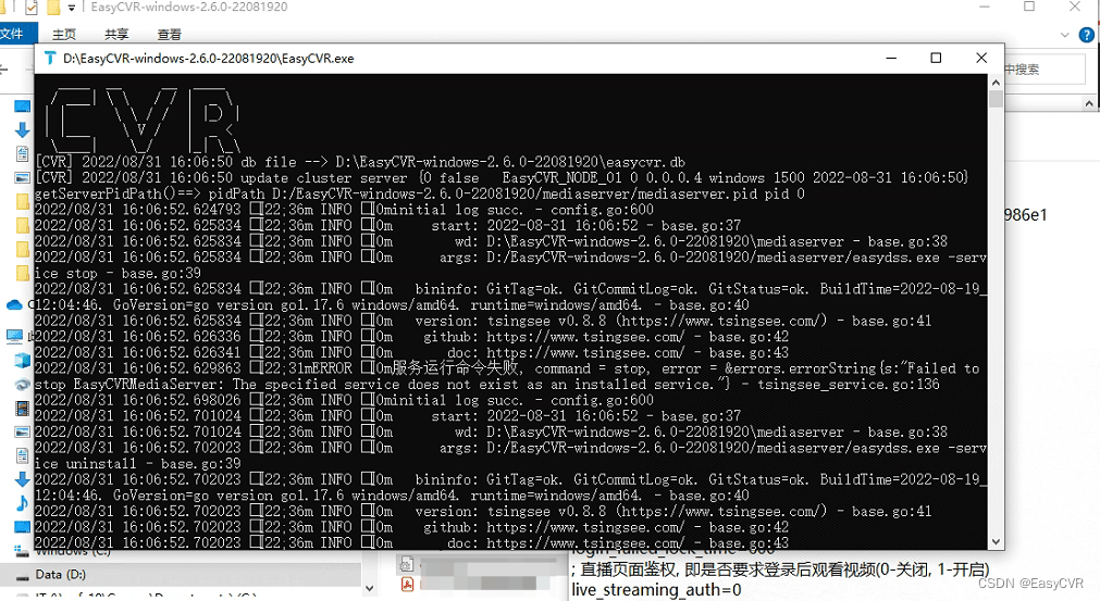 有用户反馈,在现场部署EasyCVR后, 通过进程启动软件,出现了报错“update cluster server”,于是请求我们协助排查。今天和大家分享一下排查及解决办法。