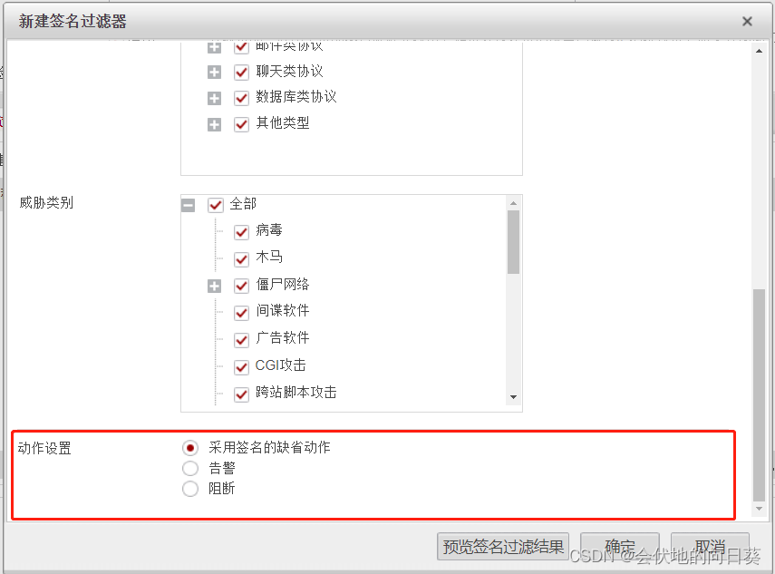 优先级:例外签名的动作优先级高于签名过滤器