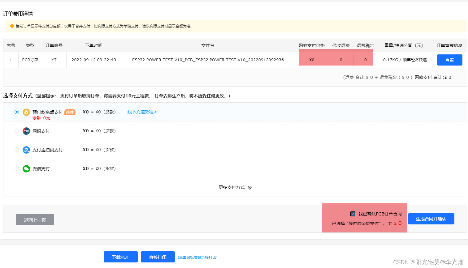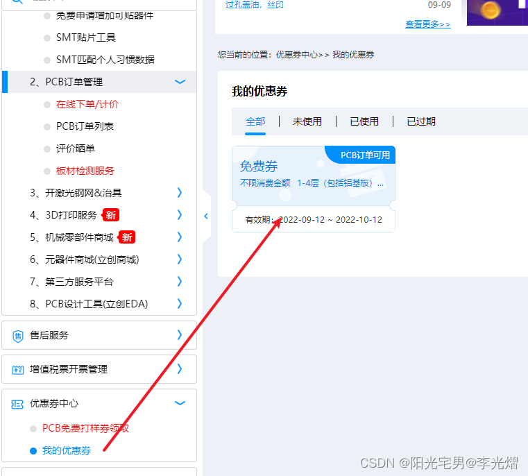 反正经过两三天从原理图到PCB画了一块板出来,然后走一下这个打样流程,薅一下羊毛并为国产PCB的使用做一下贡献。