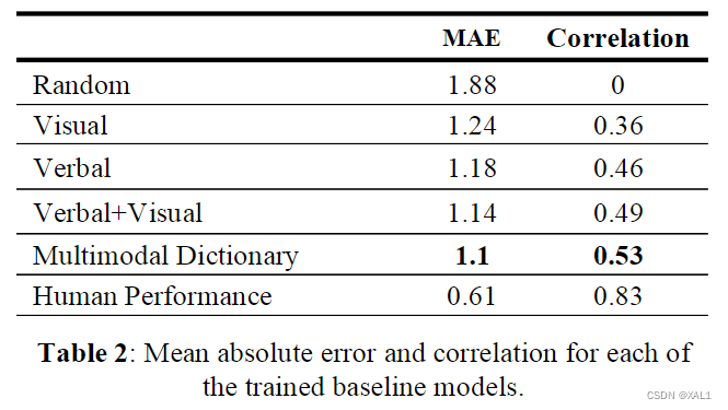| Verbal + Visual | 结合单词和视觉姿势数据进行训练,每个意见段的单词和视觉特征被简单的concat起来。 |