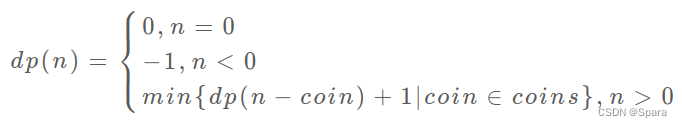 这里我们用当目标金额为 i 时,至少需要 dp[i] 枚硬币凑出,这样最后的结果就是dp[amount]这个数了。