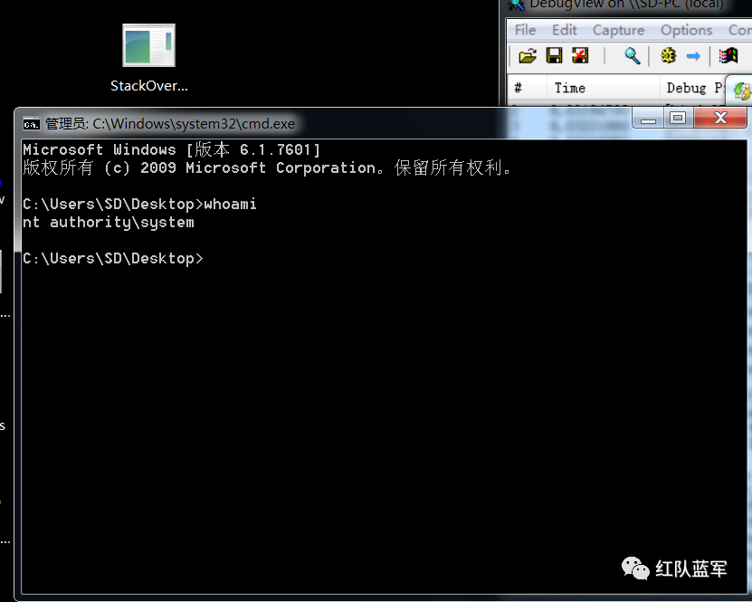 由于当前进程具有system令牌,我们通过当前进程创建的cmd.exe拥有system权限。