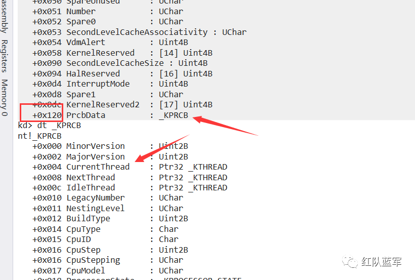 然后通过KPCR+124h获取CurrentThread,CurrentThread结构体为EThread,EThread的第一个成员KThread+40为APC_STATE结构,其中包含当前线程的“养父母”进程。