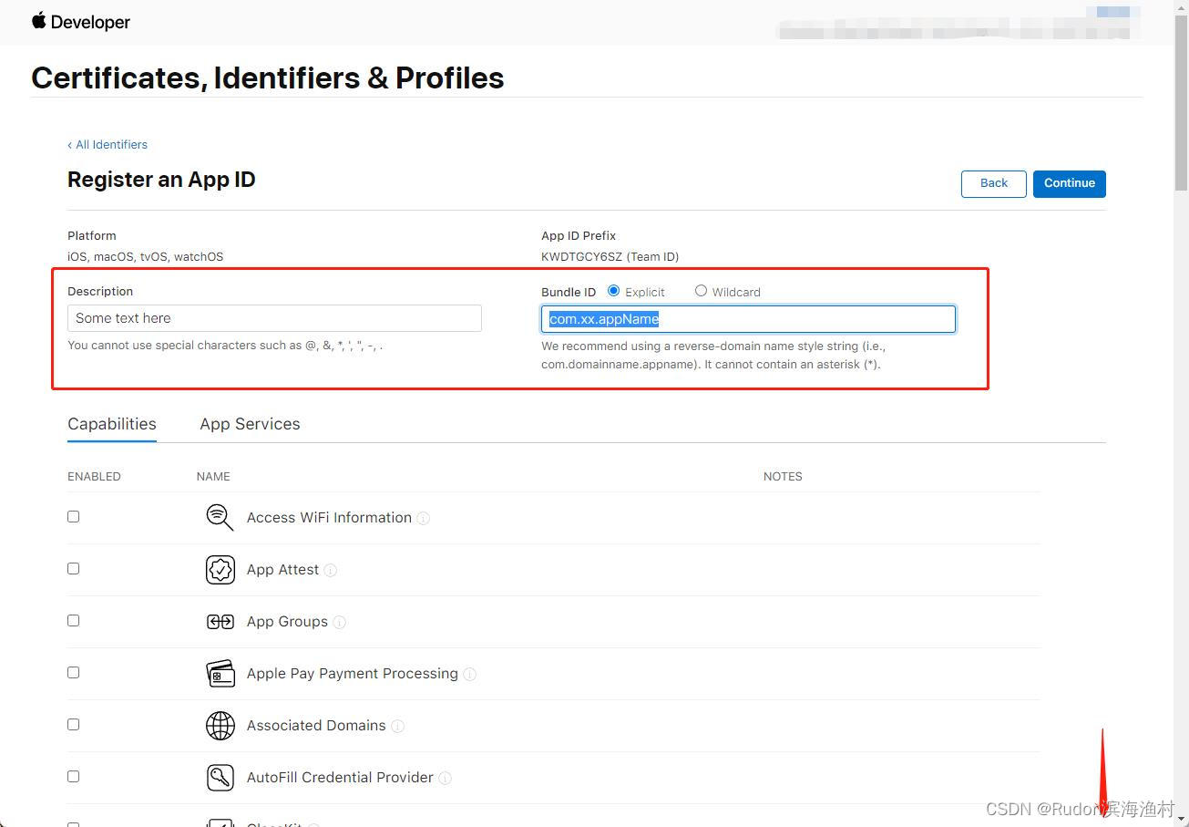- 在“Identifiers”申请项目的App ID (纯粹登记)