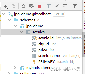 这里需要注意JPA自动建表的字段命名规则采用的是下划线,如属性scenicName会将生成数据库字段scenic_name,如果需要生成非下划线字段,可以采用@Column(name = "ScenicName")