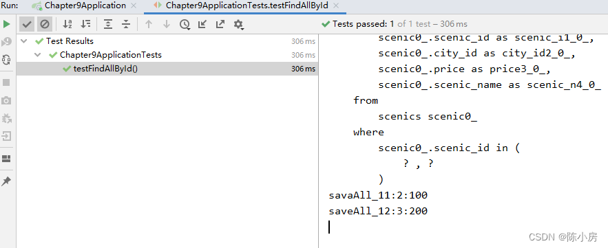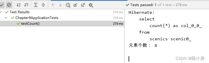 在测试用例类Chapter9ApplicationTests中添加测试方法进行测试