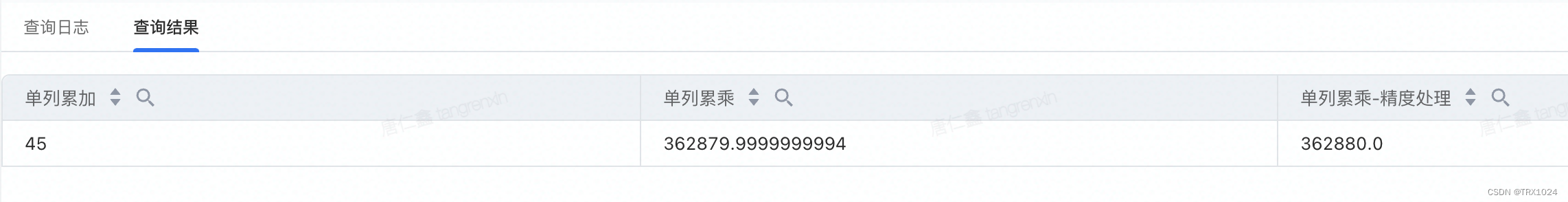 - power(10, sum(log(10, fee))) as `单列累乘`,