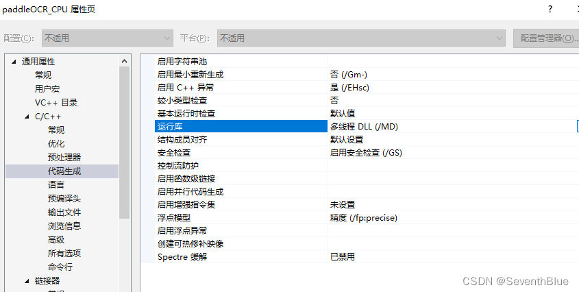 上面错误是没有添加paddle_inference和opencv库。首先添加opencv库,这不是重点,不赘述,可参考。添加paddle_inference依赖库和第三方库,这里直接贴出添加的路径了(可以在新建项目属性表上,执行如下操作)。