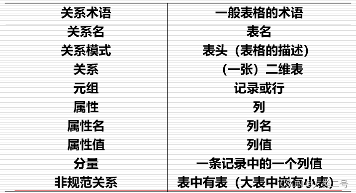 - 一个关系对应通常说的一张表。